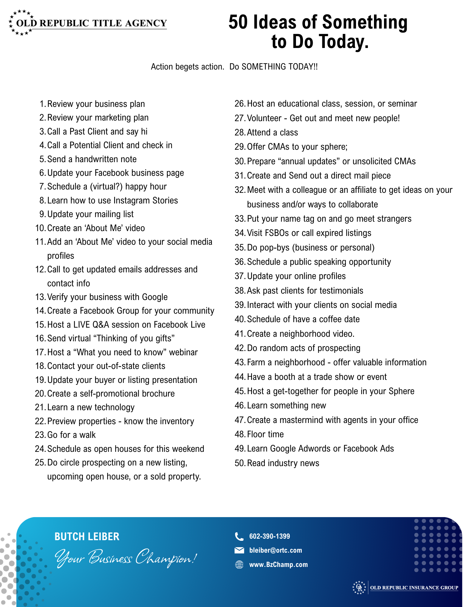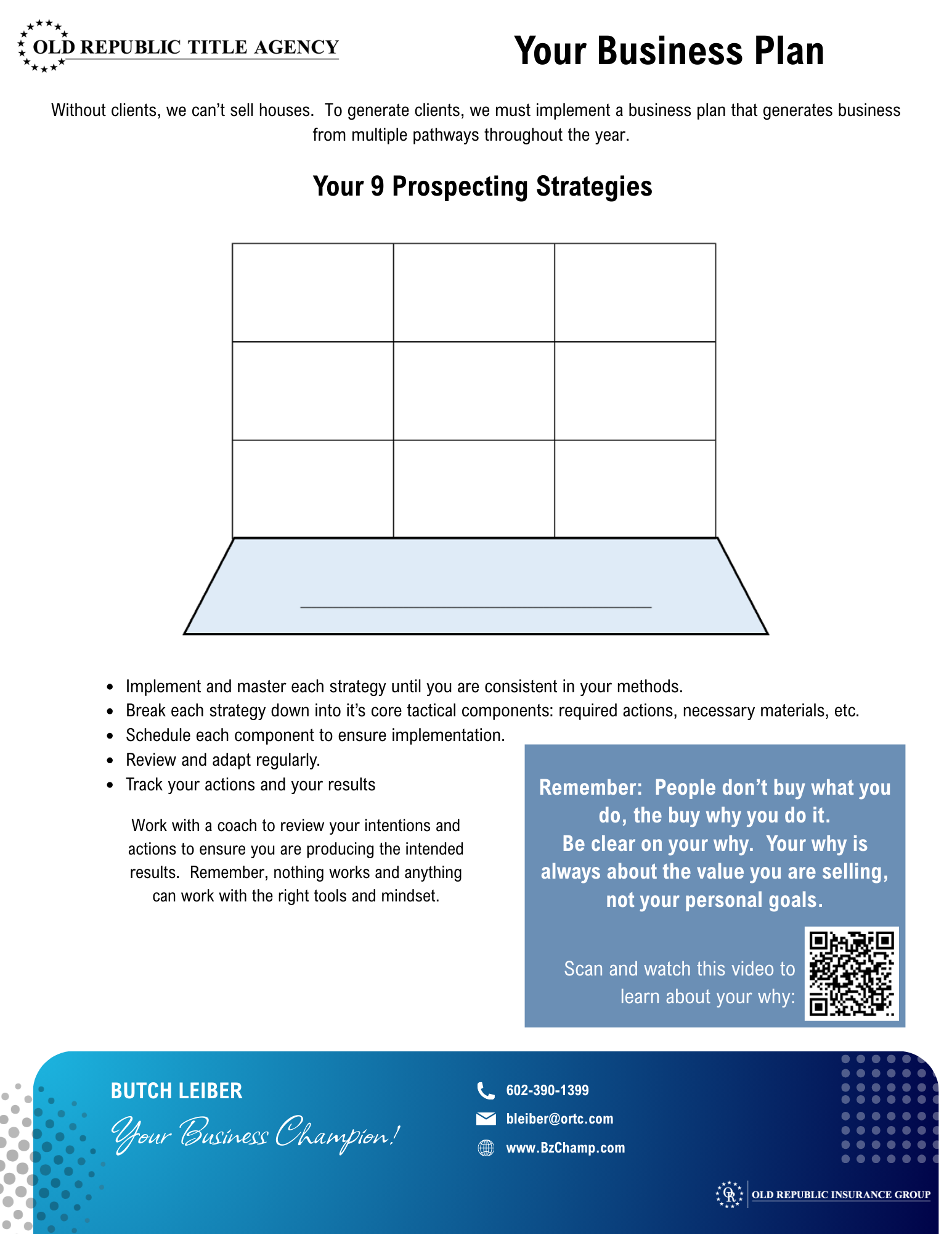 Schedule time with me to go over details of this document and effetively implementing the plan.